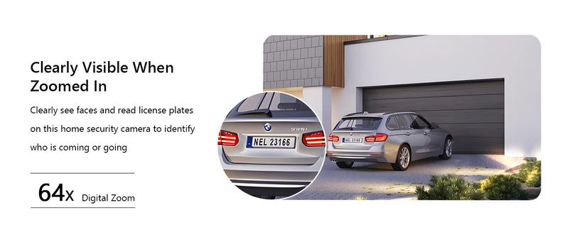 Wansview security cameras wireless outdoor deliver crisp 2K images with dual lenses—3.6mm wide-angle for broad views of your yard or driveway, and 8mm telephoto for detailed close-ups of visitors or packages. With 64x digital zoom, the solar security cameras wireless outdoor clearly identifies people approaching your house up to 30 feet away, ensures no detail is missed. Day or night, enjoy top-notch surveillance & security for your home.